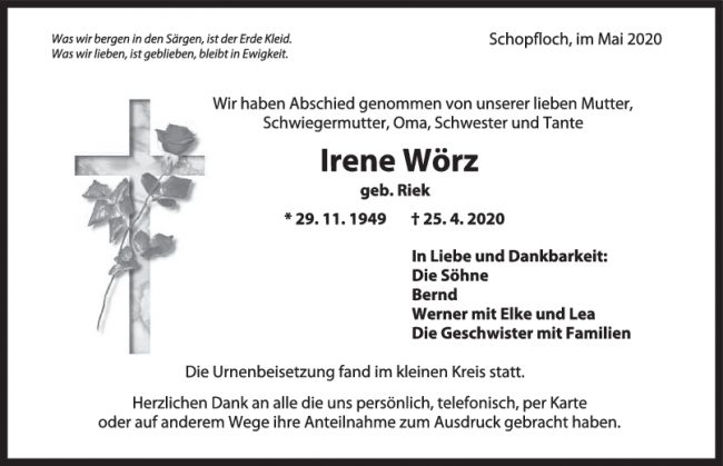Trauer Irene Wörz