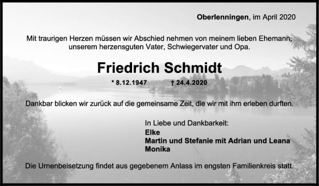 Trauer Friedrich Schmidt