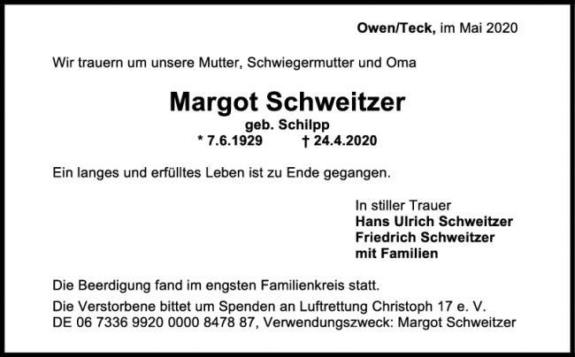 Trauer Margot Schweitzer