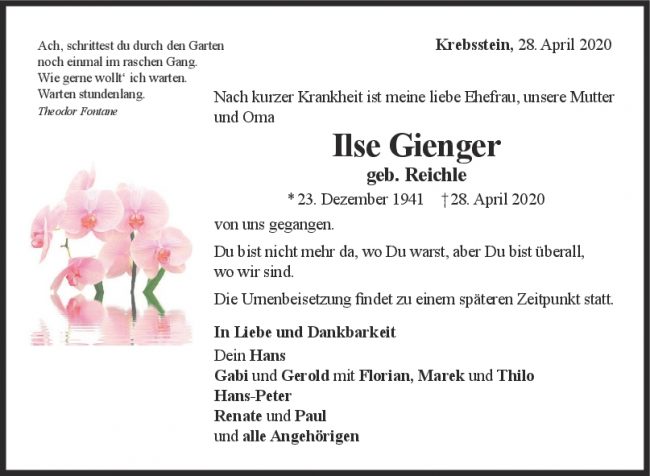 Trauer Ilse Gienger