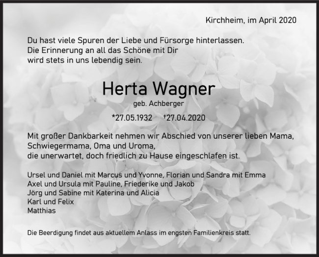 Trauer Herta Wagner