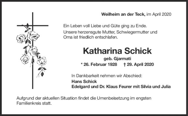 Trauert Katharina Schick