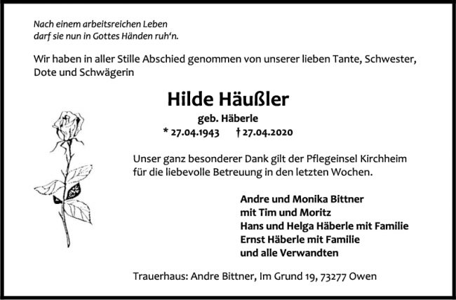 Trauer Hilde Häußler