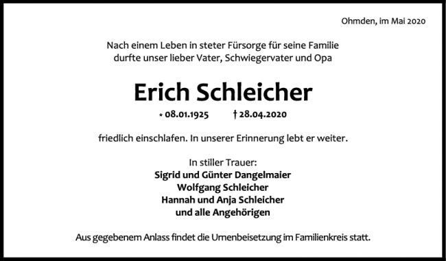 Trauer Erich Schleicher