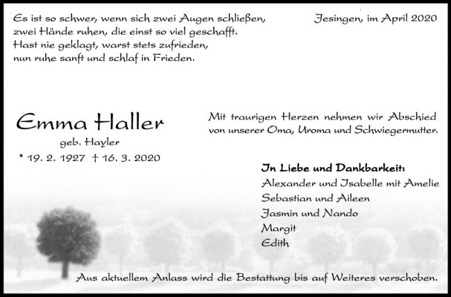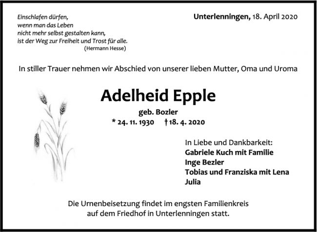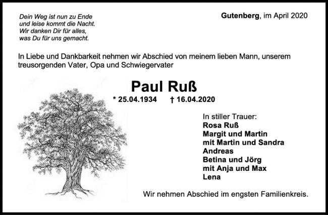 TodesanzeigeVon 19. April 2020Kommentar hinterlassen