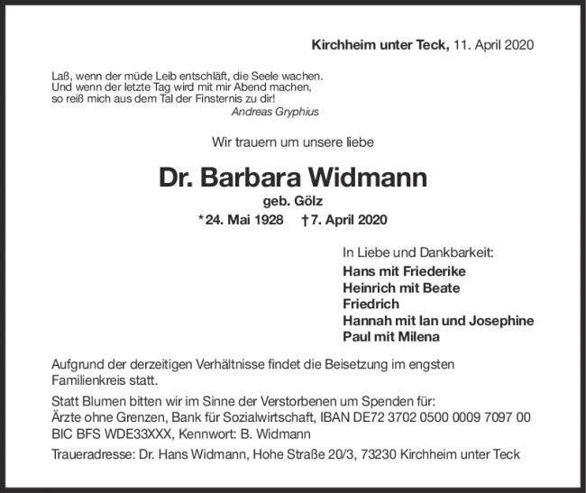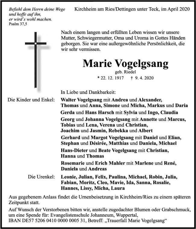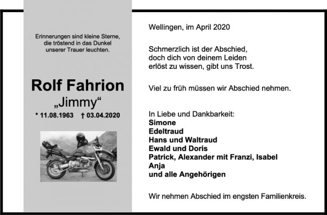 TodesanzeigeVon 14. April 2020Kommentar hinterlassen