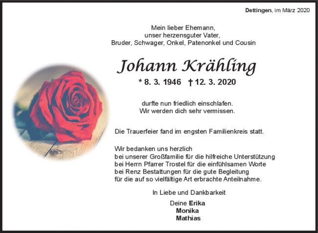 TodesanzeigeVon 26. März 2020Kommentar hinterlassen