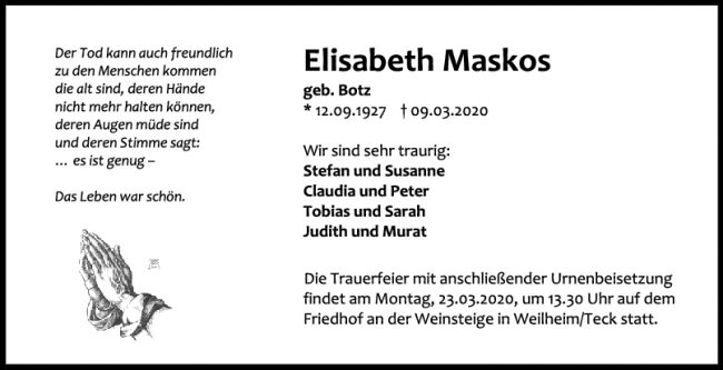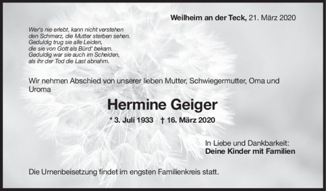 TodesanzeigeVon Benny Kuder17. März 2020Kommentar hinterlassen