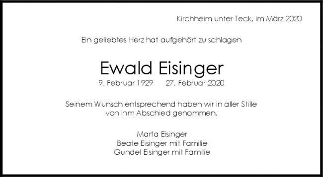 Trauer Ewald Eisinger