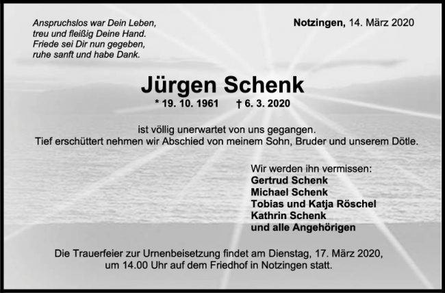 Trauer Jürgen Schenk