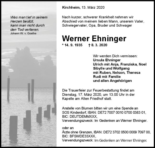 Trauer Werner Ehninger