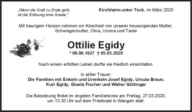Trauer Ottilie Egidy