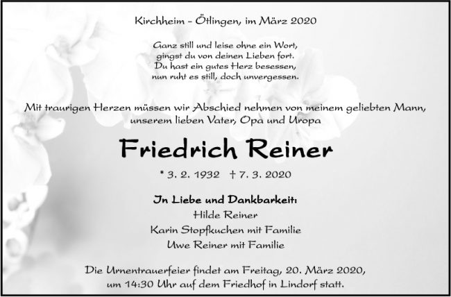 Trauer Friedrich Reiner