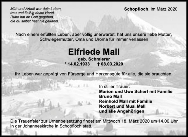 Trauer Elfriede Mall