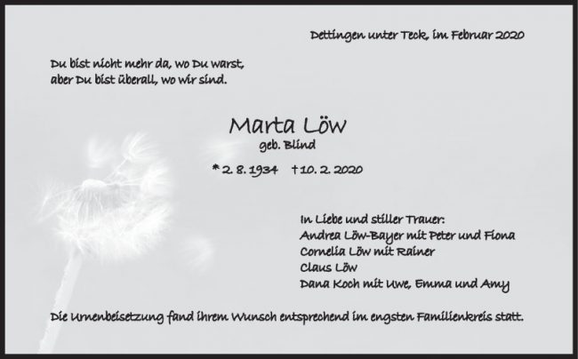 Trauer Marta Löw