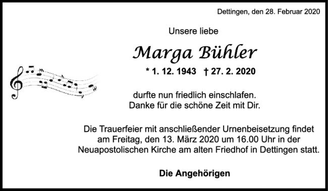 Trauer Marga Bühler