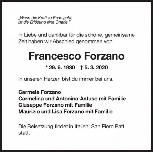 Trauer Francesco Forzano