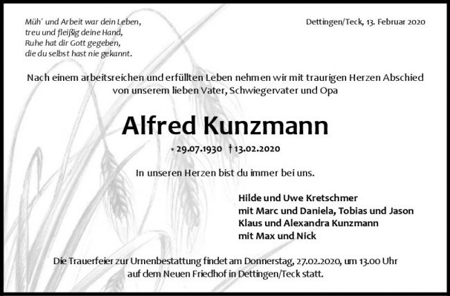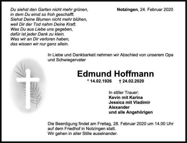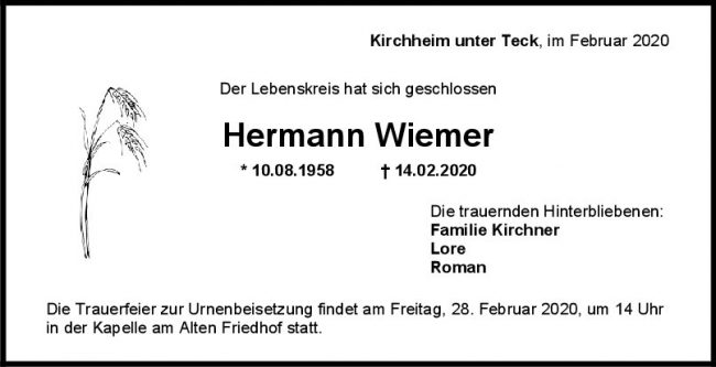 TodesanzeigeVon Benny Kuder16. März 2020Kommentar hinterlassen