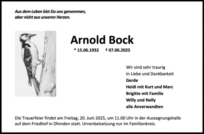 Trauer Arnold Bock
