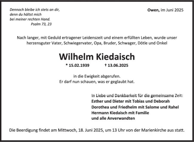 Trauer Wilhelm Kiedaisch