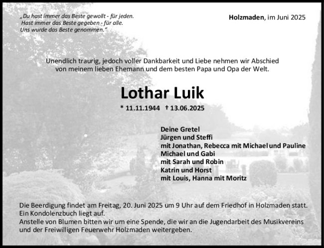 Trauer Lothar Luik