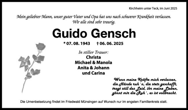Trauer Guido Gensch