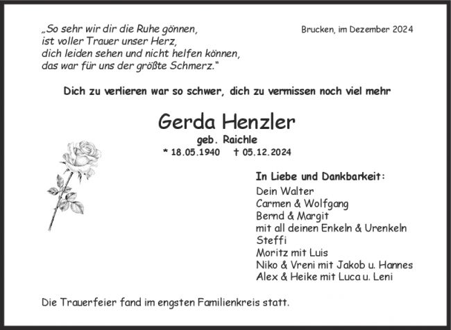 Trauer Gerda Henzler