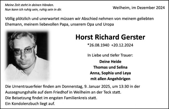Trauer Horst Richard Gerster