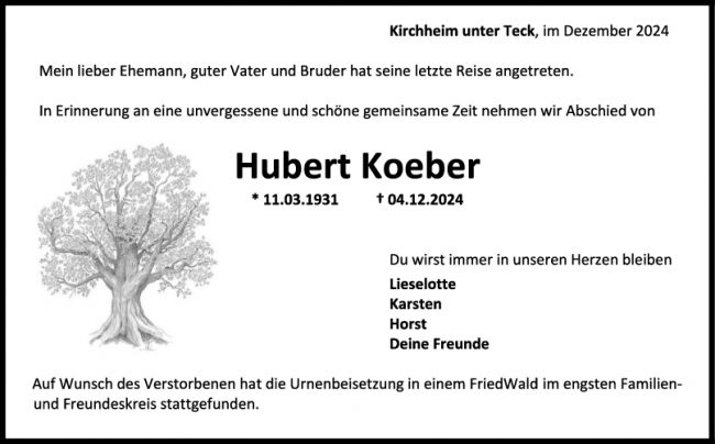 Trauer Hubert Koeber