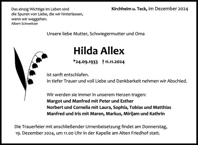 TodesanzeigeVon 14. Dezember 20243 Kommentare