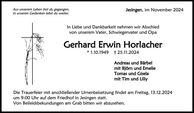 TodesanzeigeVon 5. Dezember 2024Kommentar hinterlassen