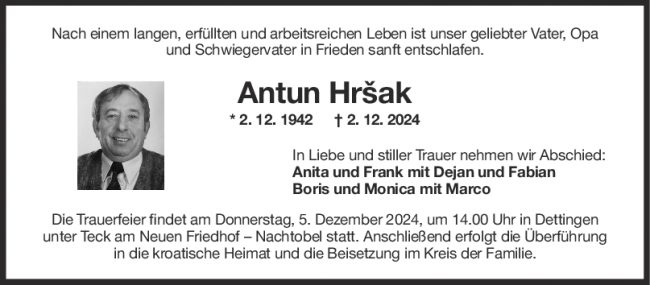 TodesanzeigeVon 7. Dezember 20242 Kommentare