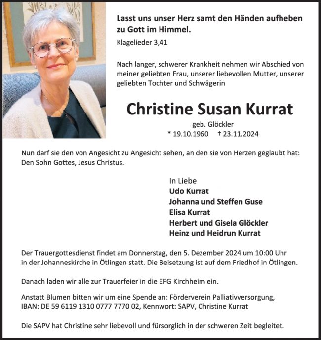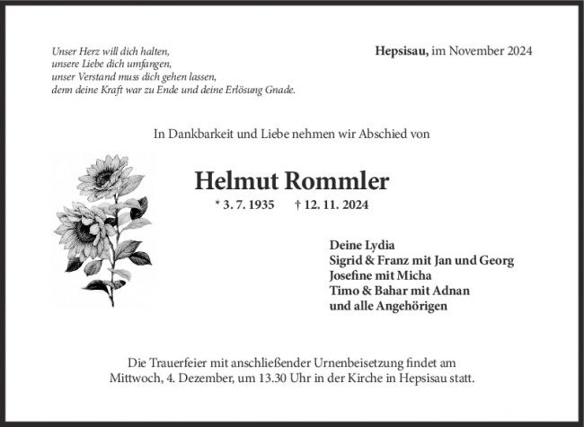 TodesanzeigeVon 30. November 2024Kommentar hinterlassen