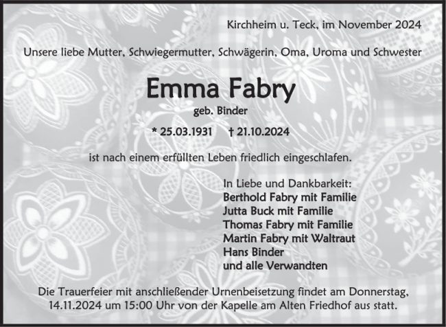 TodesanzeigeVon 7. November 2024Kommentar hinterlassen