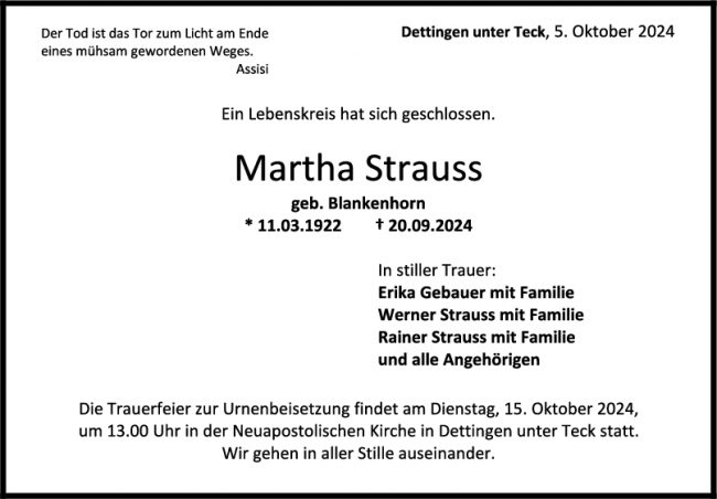 TodesanzeigeVon 5. Oktober 2024Kommentar hinterlassen