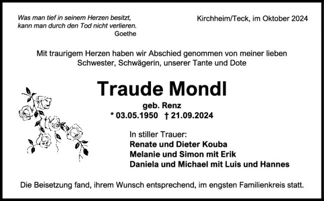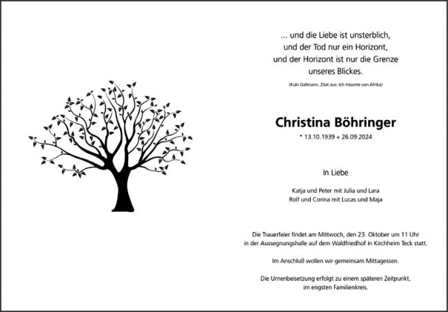 TodesanzeigeVon Benny Kuder5. Oktober 2024Kommentar hinterlassen