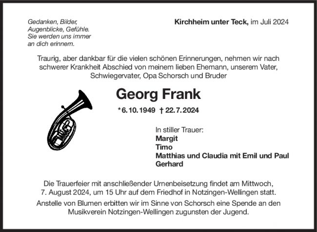 Trauer Georg Frank