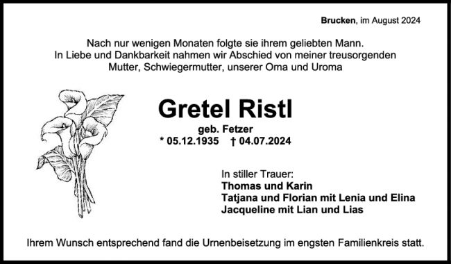 Trauer Gretel Ristl