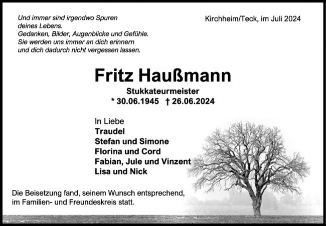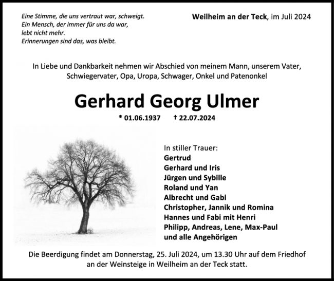 TodesanzeigeVon 25. Juli 20242 Kommentare