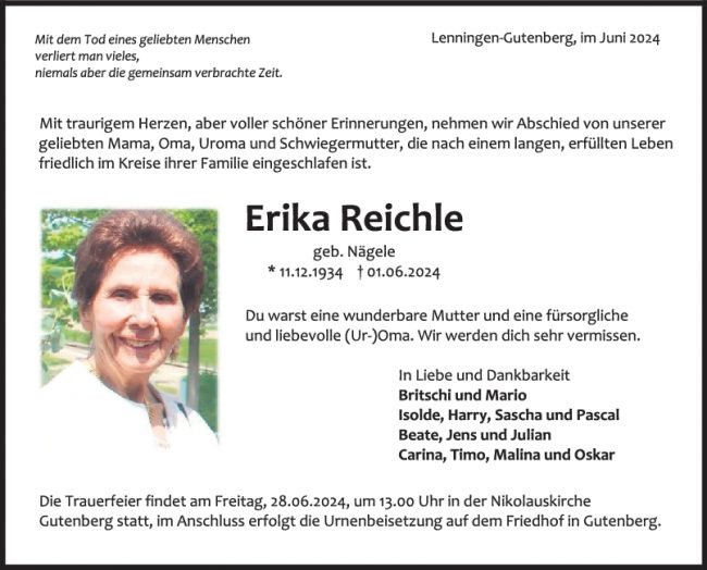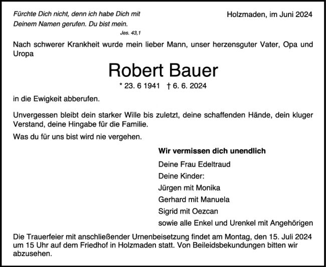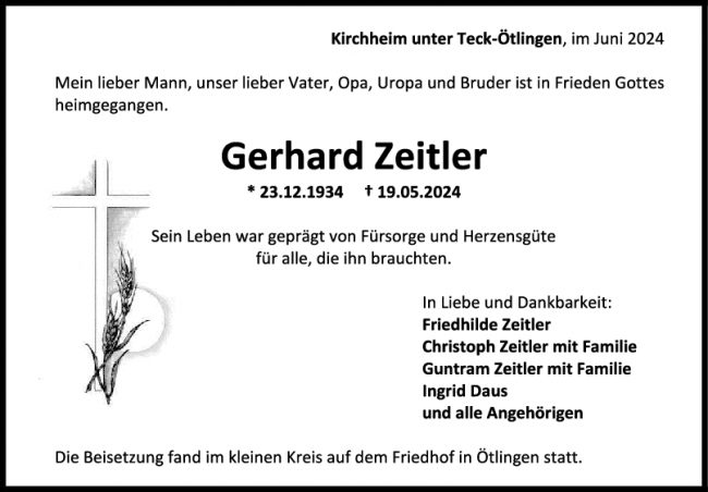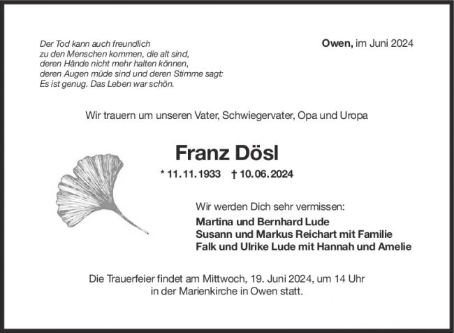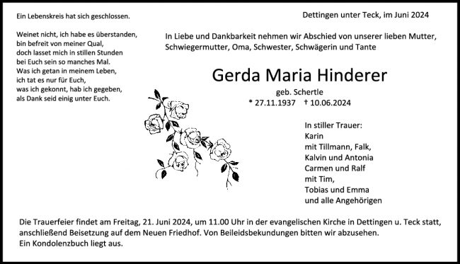 TodesanzeigeVon 15. Juni 20241 Kommentar