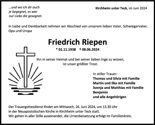 TodesanzeigeVon Benny Kuder13. Juni 2024Kommentar hinterlassen