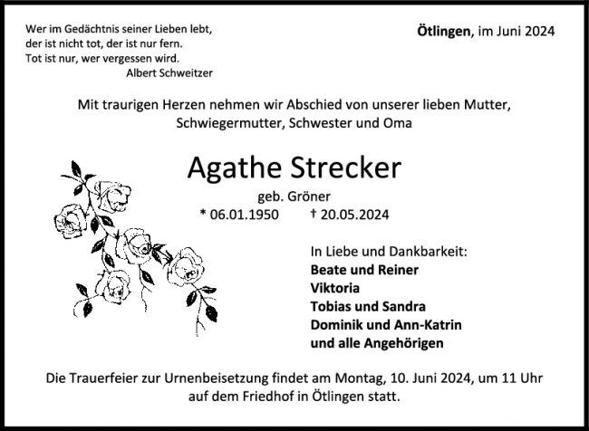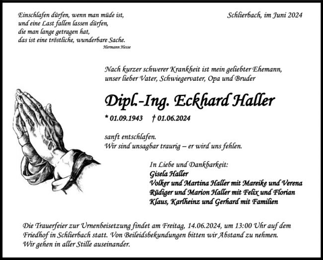 TodesanzeigeVon 6. Juni 2024Kommentar hinterlassen