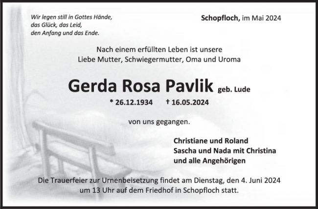 Trauer Gerda Rosa Pavlik