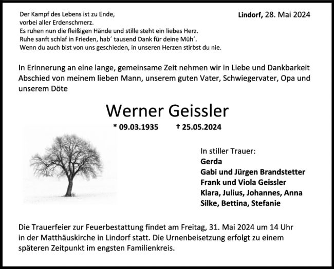 Trauer Werner Geissler