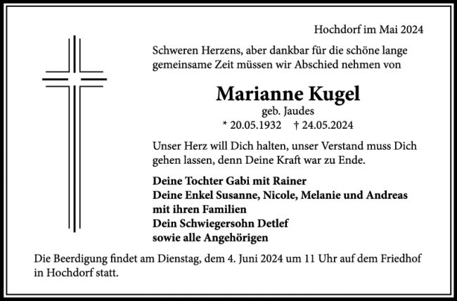 Trauer Marianne Kugel