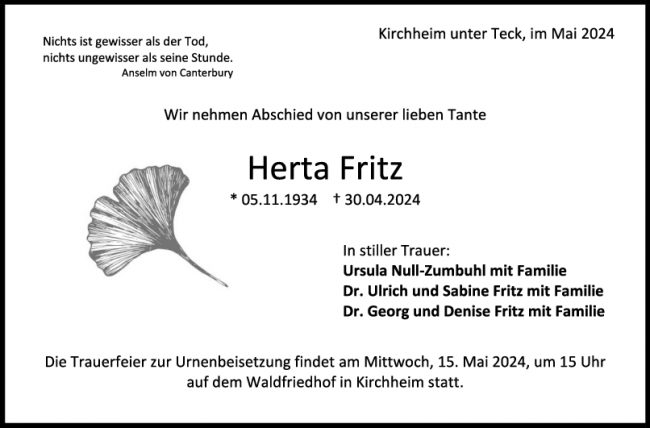 TodesanzeigeVon 15. Mai 2024Kommentar hinterlassen
