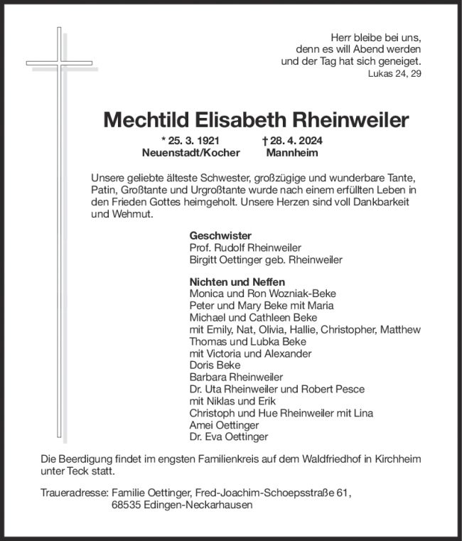 TodesanzeigeVon Benny Kuder11. Mai 20241 Kommentar