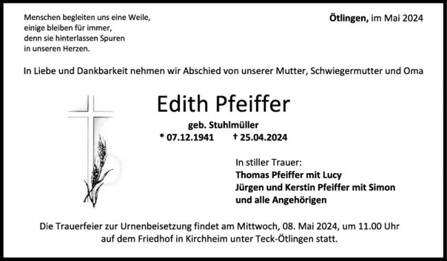TodesanzeigeVon 1. Mai 2024Kommentar hinterlassen