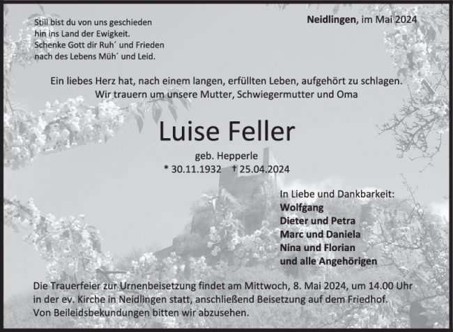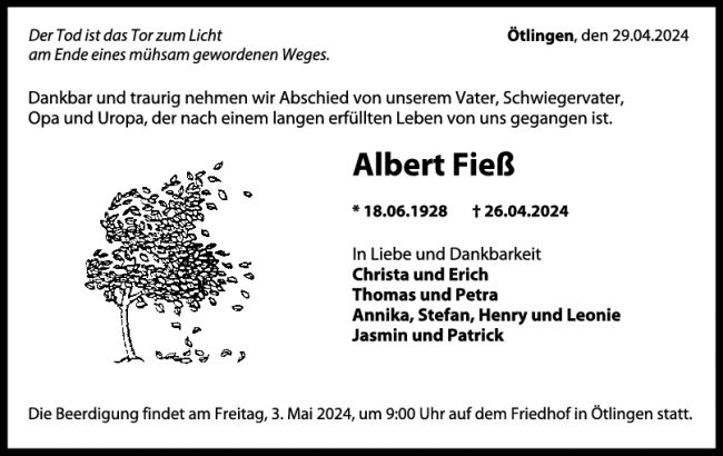 TodesanzeigeVon 4. Mai 2024Kommentar hinterlassen
