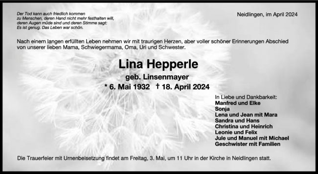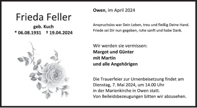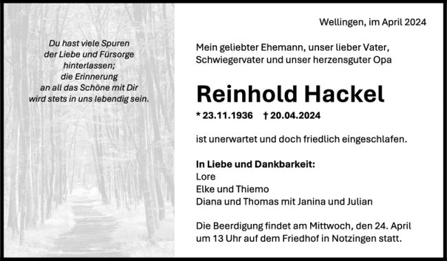 TodesanzeigeVon Benny Kuder21. April 2024Kommentar hinterlassen